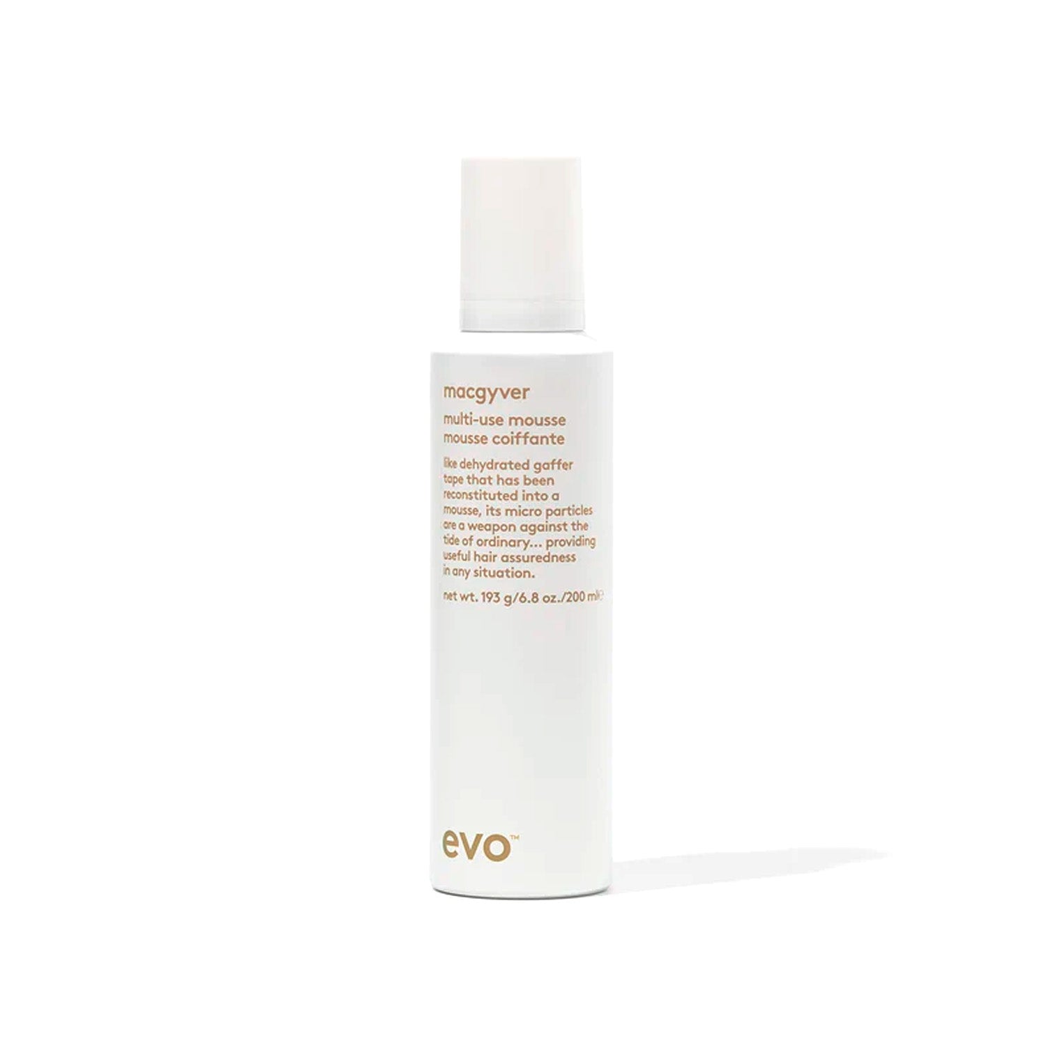 macgyver is a multi-purpose hair styling mousse that can be used with or without heat to create touchable texture and volume. this versatile hair mousse adds style support and separation. macgyver creates lasting hold and can be brushed out easily without residue. macgyver multi-use mousse is part of the style family, offering styling and finishing options for all hair types.